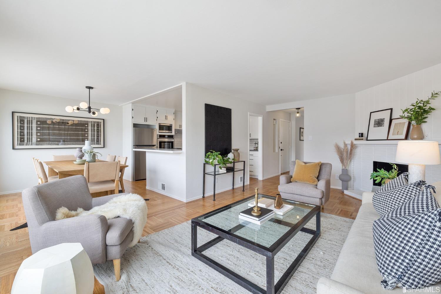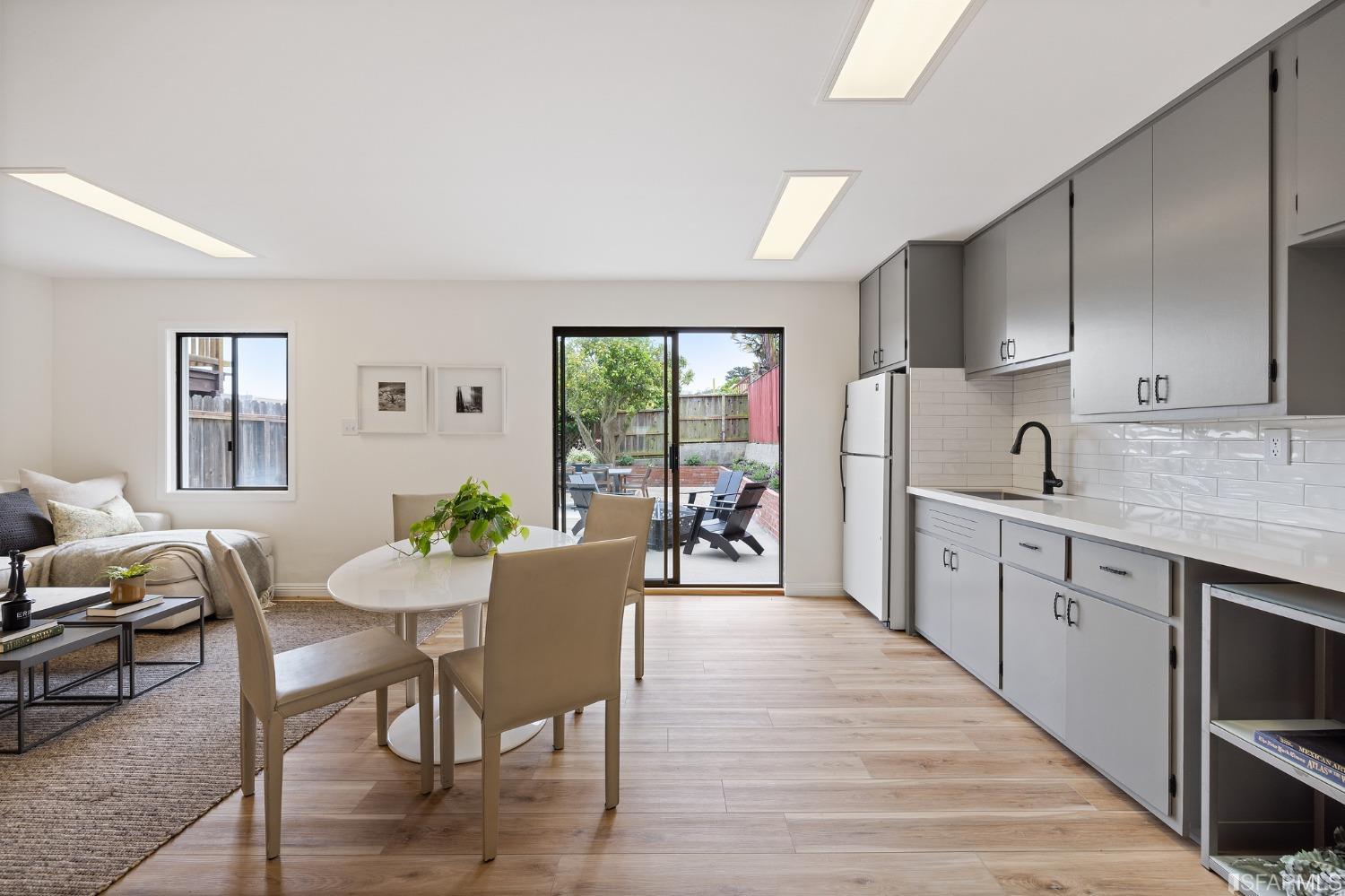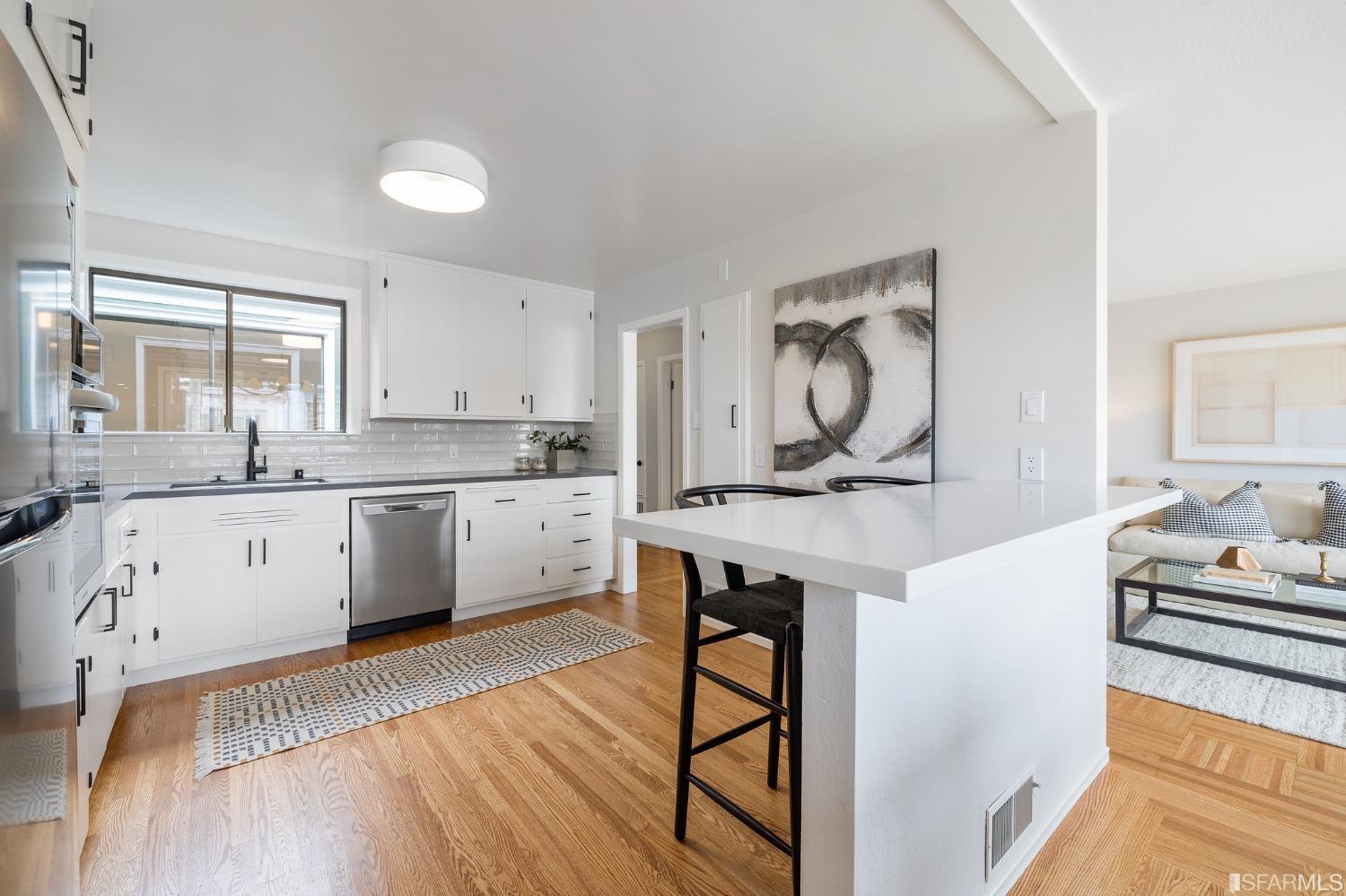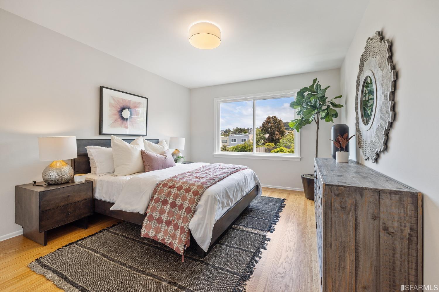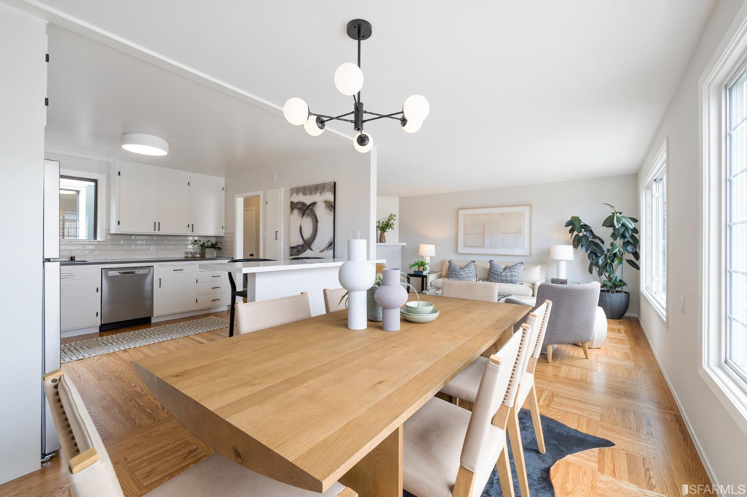 Welcome to this updated mid-century 4BD,2BA home, ideally situated in University Mound between Portola and the Excelsior. The main level welcomes you to a generously sized, bright living area that features a gas/wood burning fireplace and transitions seamlessly into the formal dining area, perfect for hosting. The well-appointed kitchen has been updated with new stainless steel appliances and a breakfast bar that connects the kitchen to the dining and living areas. Completing the main level are 3 bedrooms, including one with a walk-in closet and an adjoining full bathroom with bathtub. The lower level offers incredible versatility, with built-in cabinetry, sink, and refrigerator, allowing for endless possibilities. This room, with a full bathroom, can be used as a family room or guest suite and opens to the large yard which includes a thriving lemon tree and planter beds, an idyllic setting for outdoor entertaining and gardening. There is two-car side by side parking in the extra deep garage with room for storage and potential for future expansion. Conveniently close to John McLaren Park, multiple playgrounds, San Bruno Avenue shops, restaurants and the Portola Library. Easy access to Hwy 101 & 280 plus the Balboa Park and Glen Park BART stations.