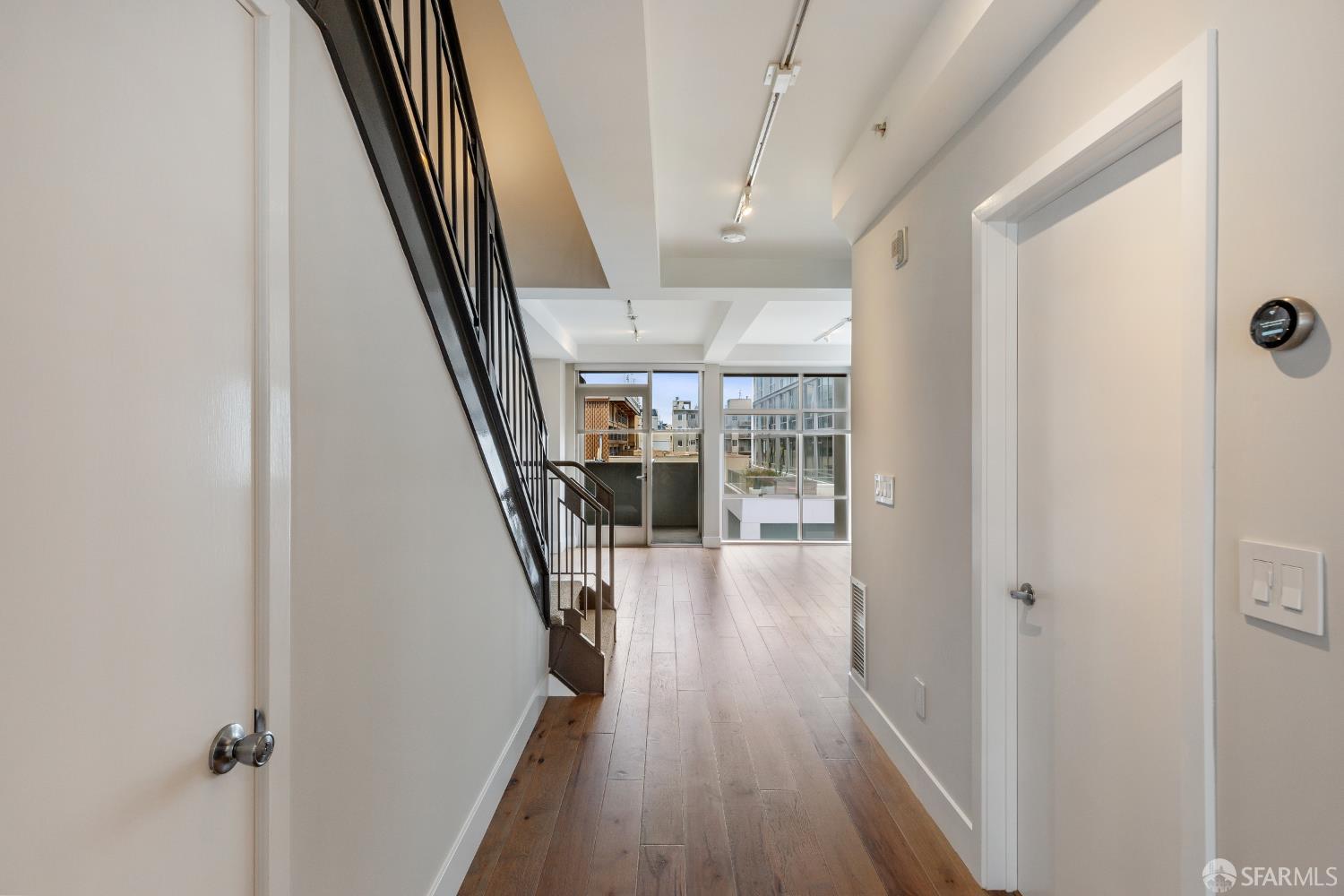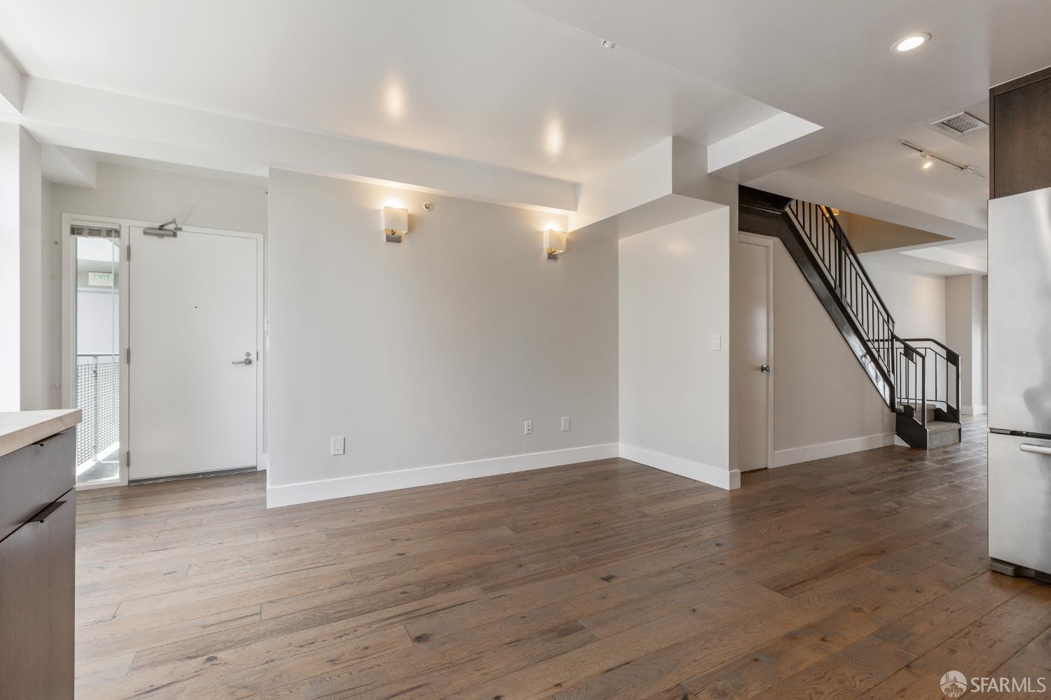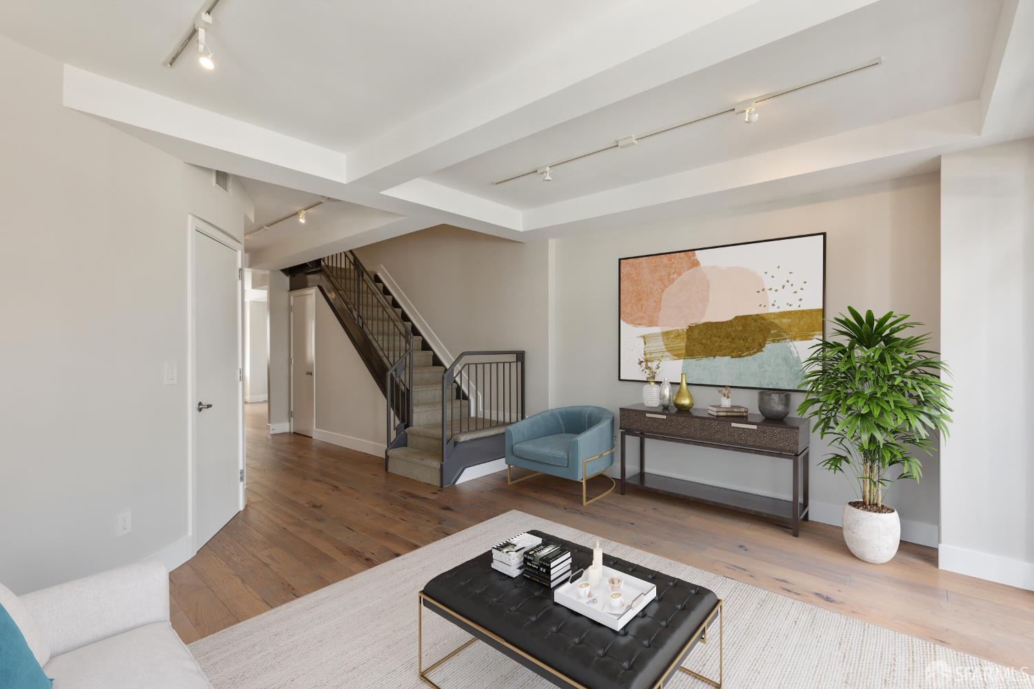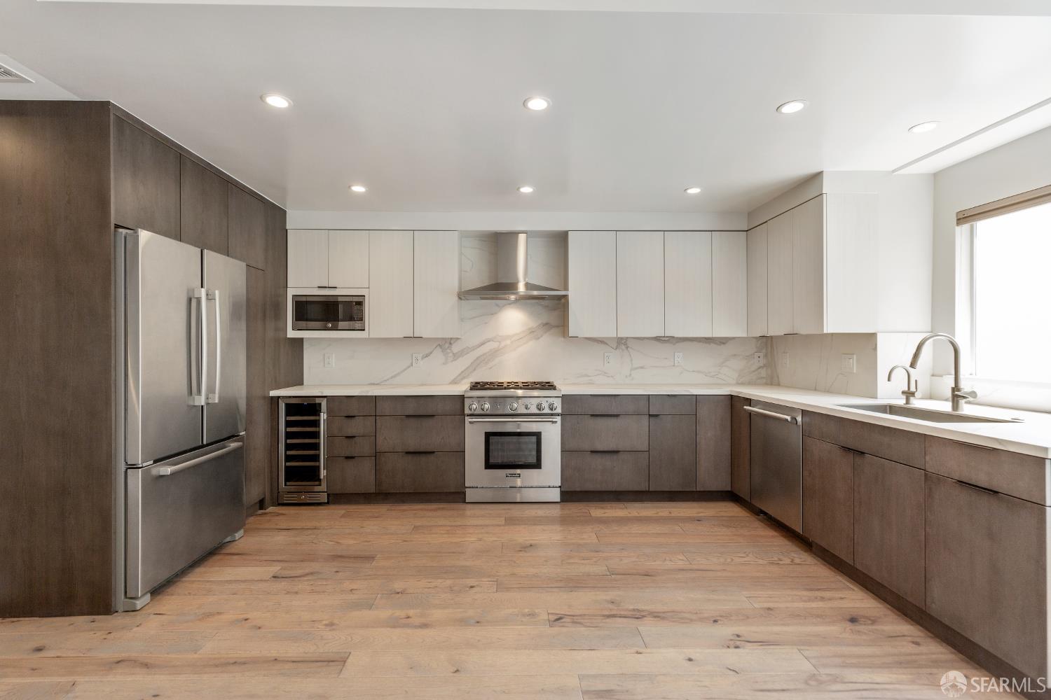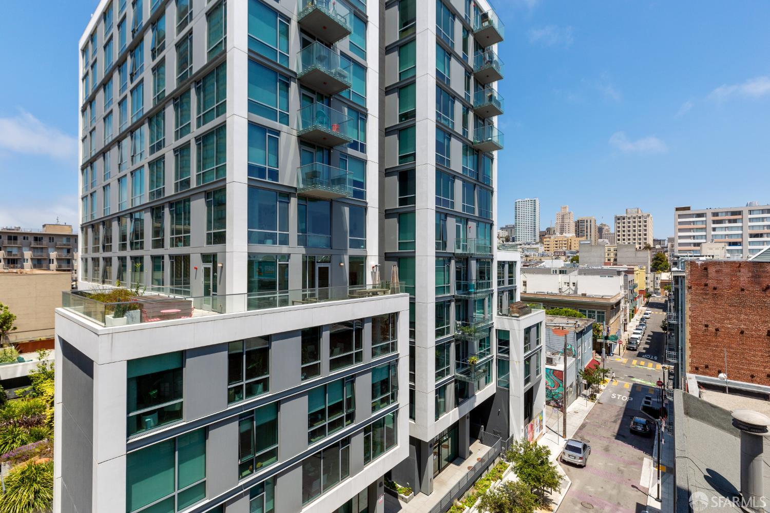 The Midtown - in the midst of it all. This gorgeously renovated 2BR/2.5BA townhouse-style condo is the one you've been waiting for. The end unit is surrounded by windows with city outlooks and filled with natural light. Upon entering, you are greeted to a chef's kitchen with Neolith quartz countertops & backsplash, high-end S/S appliances including a Thermador gas range & Bosch refrigerator, wine fridge and modern cabinetry. There is also a dining area, large half bath, laundry room and living room with a walk out balcony. As you ascend the stairs, you'll find two spacious en-suite bedrooms with office/reading nooks and custom closet organizers. Lofty ceilings and beautiful wide-plank hardwood floors add a modern touch. One car deeded parking with EV charging in a secured garage accompanies the unit. Google Fiber Webpass included. Conveniently located at the crossroads of Polk Gulch, Pac Heights, Nob/Russian Hill and Union Square. 100 Walk Score!