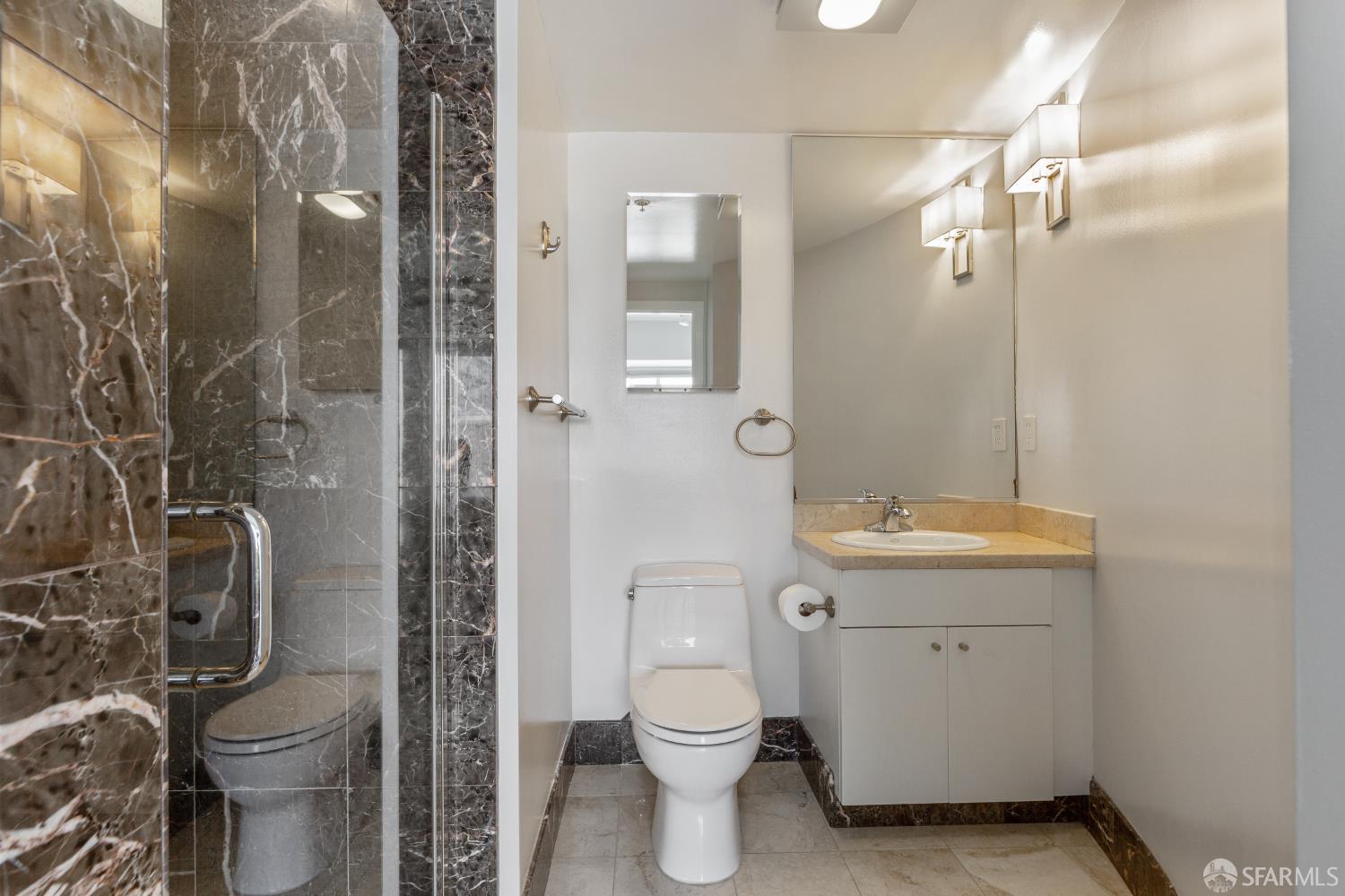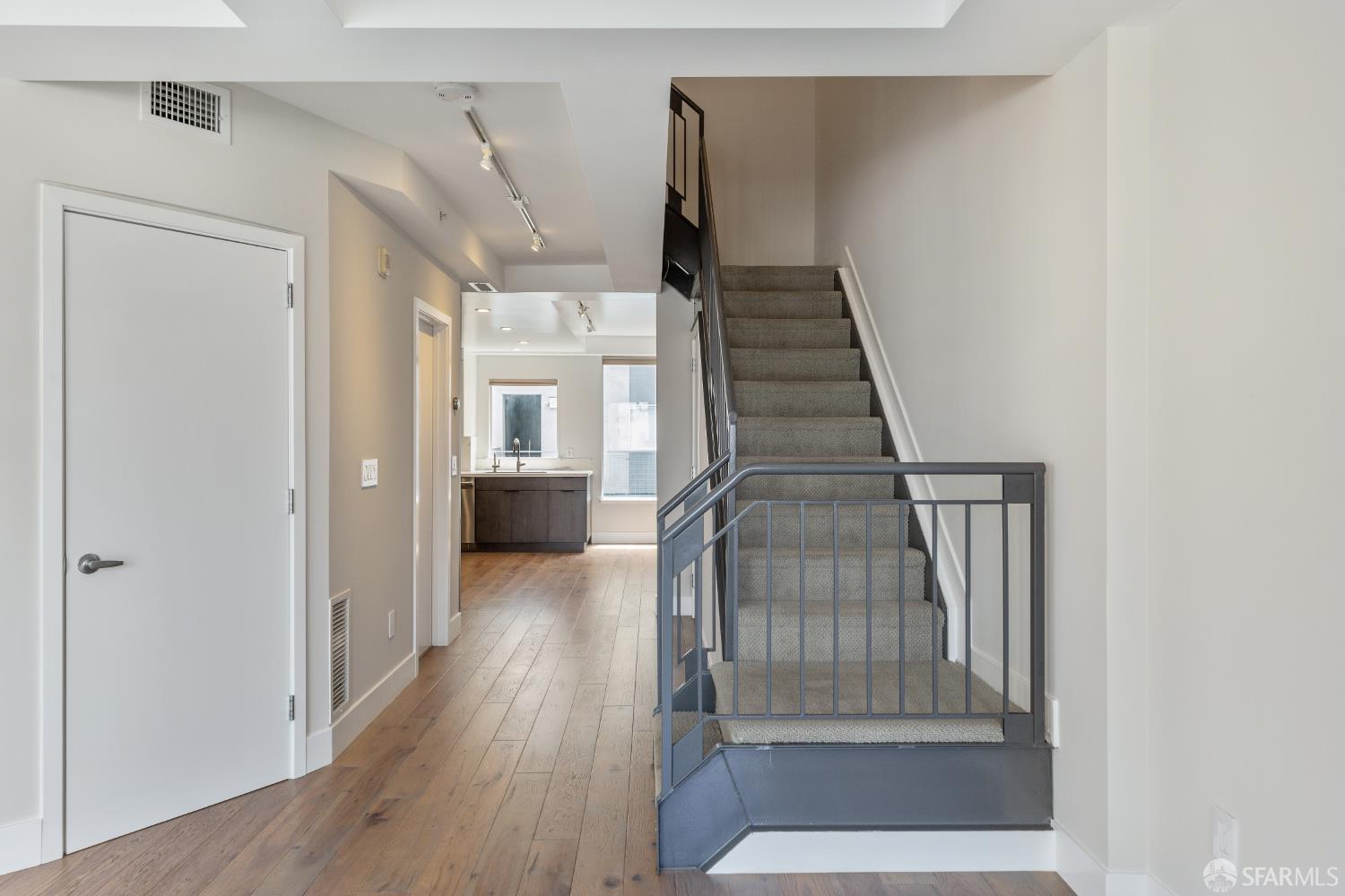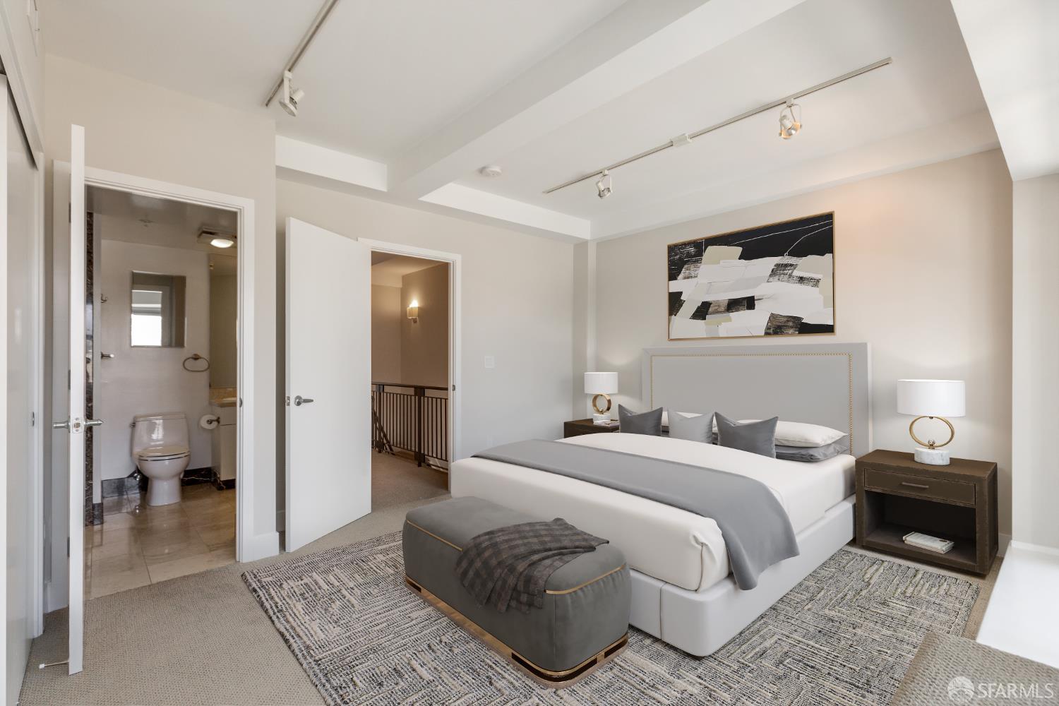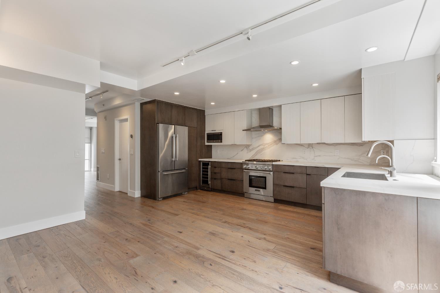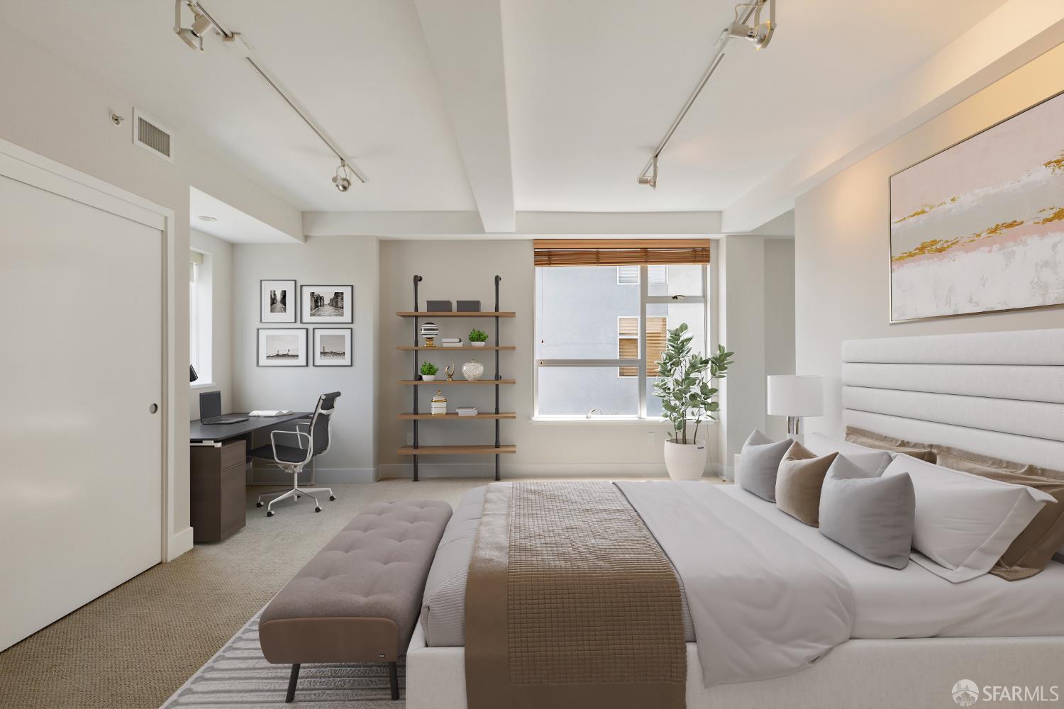 The Midtown - in the midst of it all. This gorgeously renovated 2BR/2.5BA townhouse-style condo is the one you've been waiting for. The end unit is surrounded by windows with city outlooks and filled with natural light. Upon entering, you are greeted to a chef's kitchen with Neolith quartz countertops & backsplash, high-end S/S appliances including a Thermador gas range & Bosch refrigerator, wine fridge and modern cabinetry. There is also a dining area, large half bath, laundry room and living room with a walk out balcony. As you ascend the stairs, you'll find two spacious en-suite bedrooms with office/reading nooks and custom closet organizers. Lofty ceilings and beautiful wide-plank hardwood floors add a modern touch. One car deeded parking with EV charging in a secured garage accompanies the unit. Google Fiber Webpass included. Conveniently located at the crossroads of Polk Gulch, Pac Heights, Nob/Russian Hill and Union Square. 100 Walk Score!