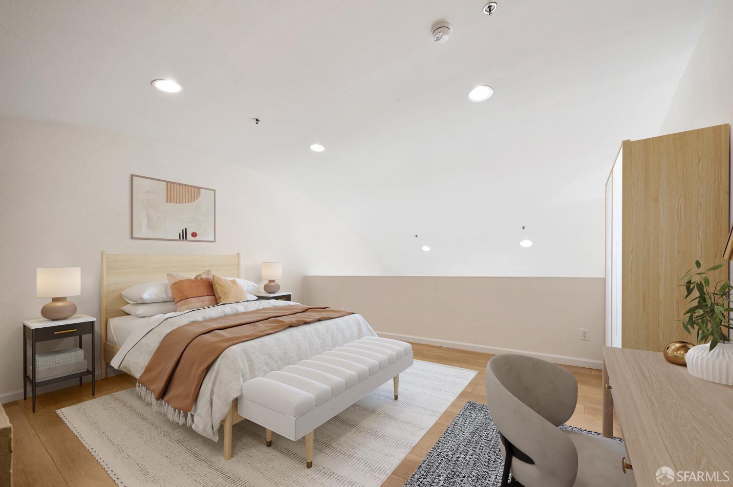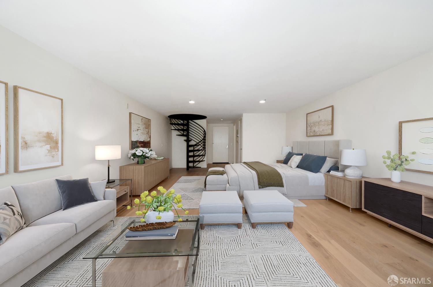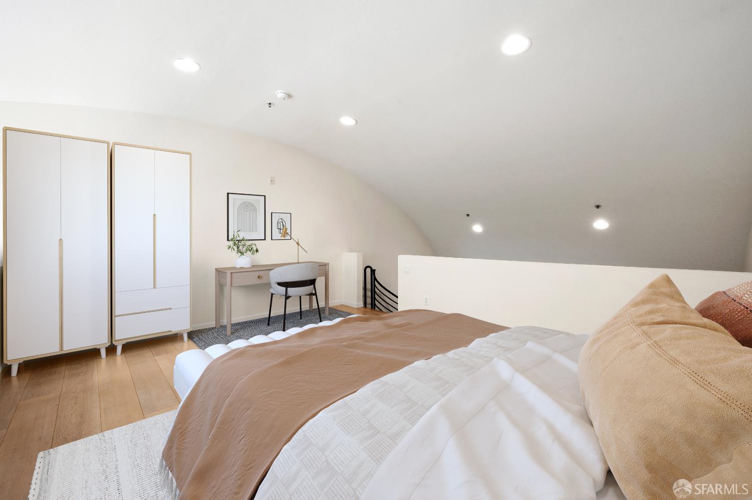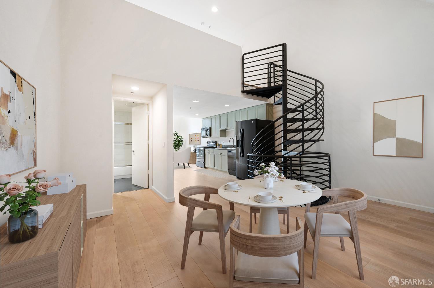 This rare tri-level urban loft condo offers grand proportions, dramatic barrel ceilings, multiple deeded balconies, and contemporary finishes all in the heart of one of San Francisco's most dynamic neighborhoods. Spanning 1,354 sq. ft. in a boutique Stanley Saitowitz-designed building, the home's flexible layout is an open canvas for creating your ideal live/work environment. The main level features expansive courtyard facing windows, distinct living and dining spaces, and an updated open kitchen. Upstairs, a lofted bedroom offers a versatile retreat that could also be used as an office or larger entertaining area while the lower level boasts a spacious primary bedroom with en-suite bath, den, private balcony, laundry room and it's own separate entrance. One car deeded parking with EV charging and storage unit in a secure garage compliment the space. Located in the vibrant Dogpatch district, this home offers unbeatable access to Mission Bay, Potrero Hill, Crane Cove Park, Chase Center, Oracle Park, UCSF, Muni, Caltrain, waterfront trails, lush parks, and the city's best dining/shopping attractions.