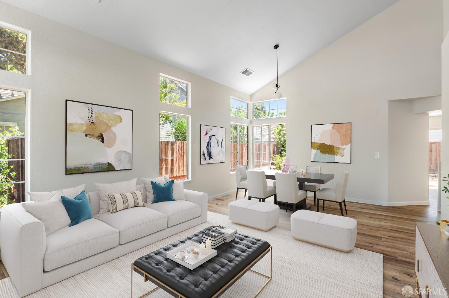 This charming 3BR/2.5BA home offers the perfect blend of comfort and functionality across two levels. Once inside, you are greeted by a great room comprised of a formal living and dining area with soaring ceilings and an abundance of natural light. The open kitchen flows effortlessly into the family room where a cozy fireplace welcomes you. Upstairs, the generous primary bedroom has an en-suite bath while two additional bedrooms offer flexibility for family, guests or a home office. Step outside to enjoy a sizable backyard ready for your dream garden, play area or ideal entertaining space. You'll appreciate the convenience of a 2-car side-by-side garage with plenty of space in the driveway. New LVP floors, new interior paint and new light fixtures add to the contemporary feel. Nestled in an established Antioch neighborhood, this home offers a striking balance of suburban tranquility and everyday convenience. Enjoy easy access to Slatten Ranch and Streets of Brentwood shopping centers, Trader Joe's, Walmart, schools and local parks. Nearby access to HWY-4 and BART ensures a smooth commute around the Bay Area. $10,000 SparkPoint Grant available towards down payment and closing costs with US Bank for eligible first time home buyers with no income limits!