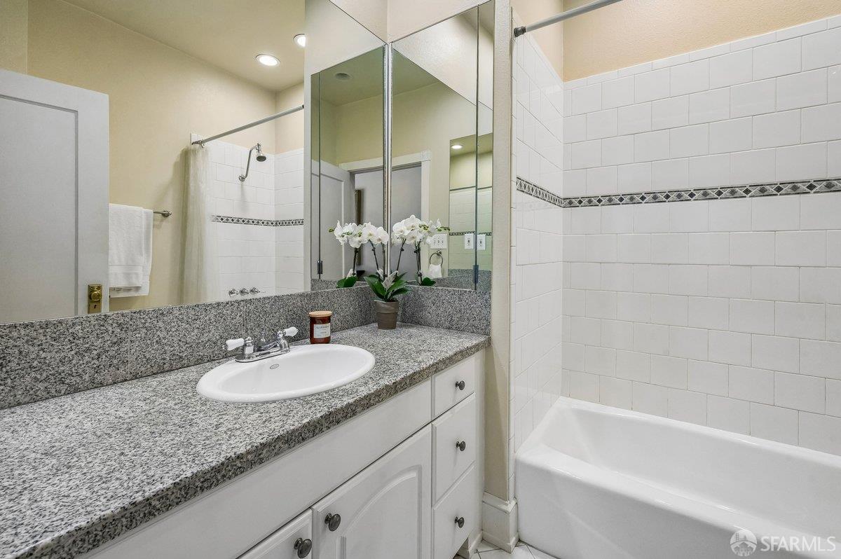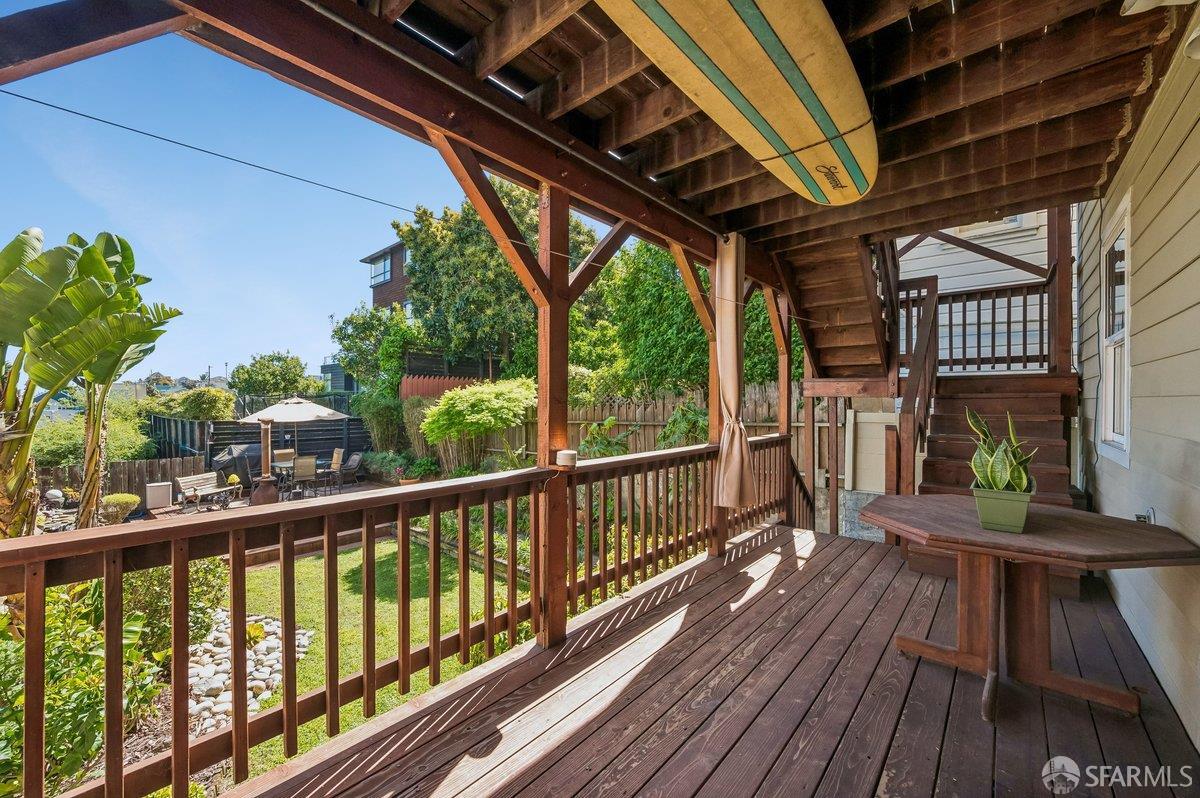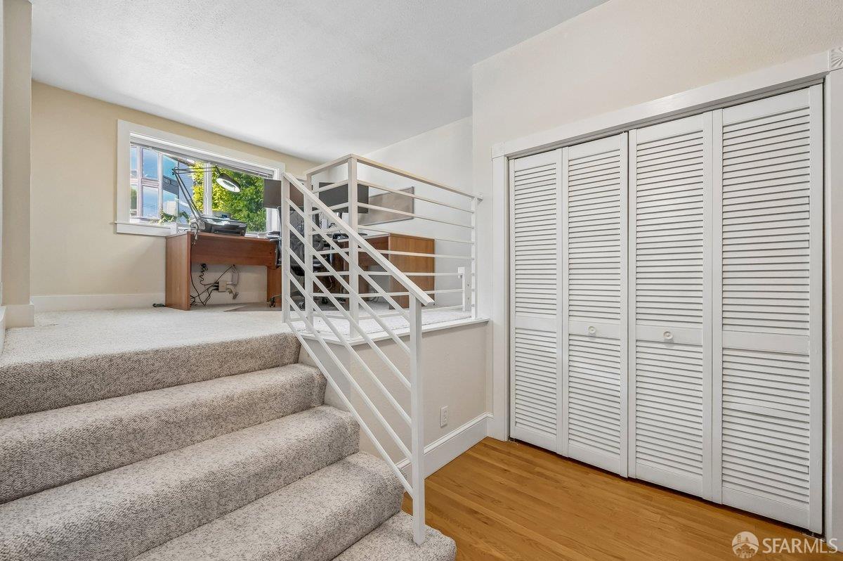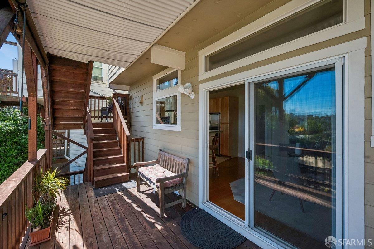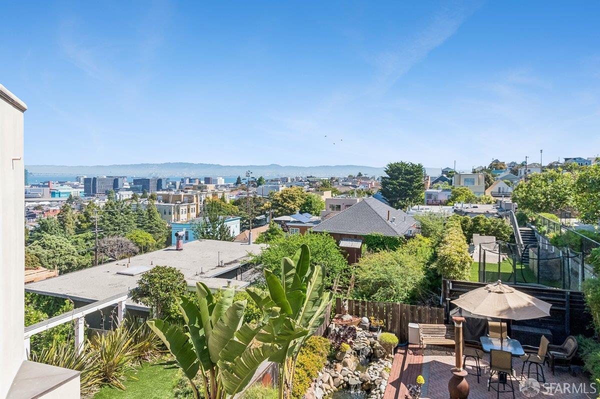 Perched on a coveted block in sunny Potrero Hill, this beautifully appointed 2BR + office/2BA contemporary condo at 839 De Haro St offers an exceptional blend of serene retreat and vibrant city living. Spanning two thoughtfully designed levels in an intimate 2-unit building, the home is anchored by a luxurious lower-level primary suite featuring a spacious sitting area, convenient wet bar, large walk-in cedar closet, and well-appointed bath creating a private sanctuary within the home. Both levels open directly to expansive decks that overlook a breathtaking shared Zen garden with koi pond, lush mature plantings, and picturesque views of the San Francisco skyline -- an idyllic setting for morning coffee, evening gatherings, or quiet reflection. The upper level showcases an open floor plan between the kitchen, living and dining spaces along with the second bedroom with built-in bookcase, 2nd full bath and flexible loft-office with closet. 1-car garage parking, ample street parking, high ceilings, and exceptional storage including additional deeded spaces complement the home. Just moments from the vibrant 18th Street corridor with its beloved cafes, restaurants, and boutiques, as well as Whole Foods, neighborhood parks including Jackson Playground and McKinley Square, and convenient access to Caltrain, tech shuttles, and major freeways, this special residence offers the very best of Potrero Hill living where neighborhood charm, natural beauty, and urban accessibility come together seamlessly.